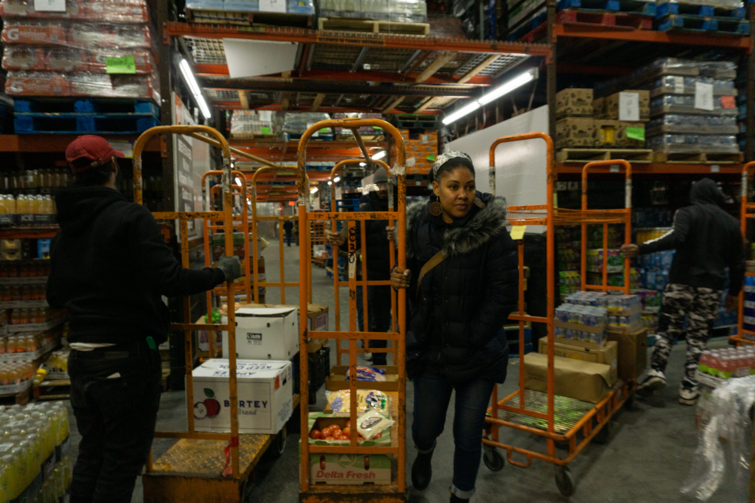 - Nov. 18, 2022–New York, NY: Scenes from a food market in Brooklyn. Akeelah is buying supplies with her partner in a food market in Brooklyn. It’s not always safe for women to shop alone in the market because most of the customers are male workers. Photo by Leying Tang.