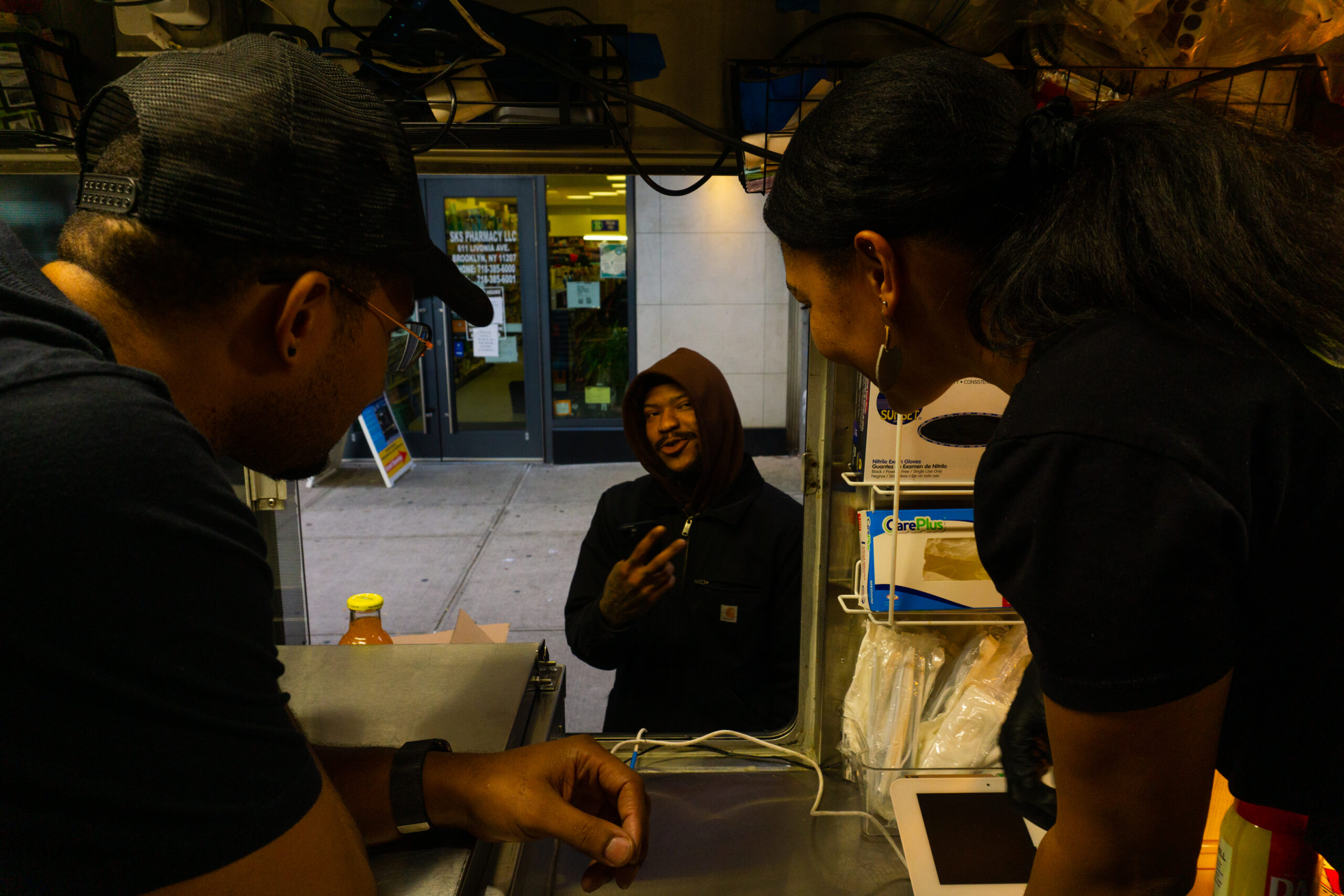 - Nov. 17, 2022–New York, NY: Scenes from Livonia Avenue, Brooklyn. Akeelah and her partner Mikell take the order of a regular customer. Photo by Leying Tang.