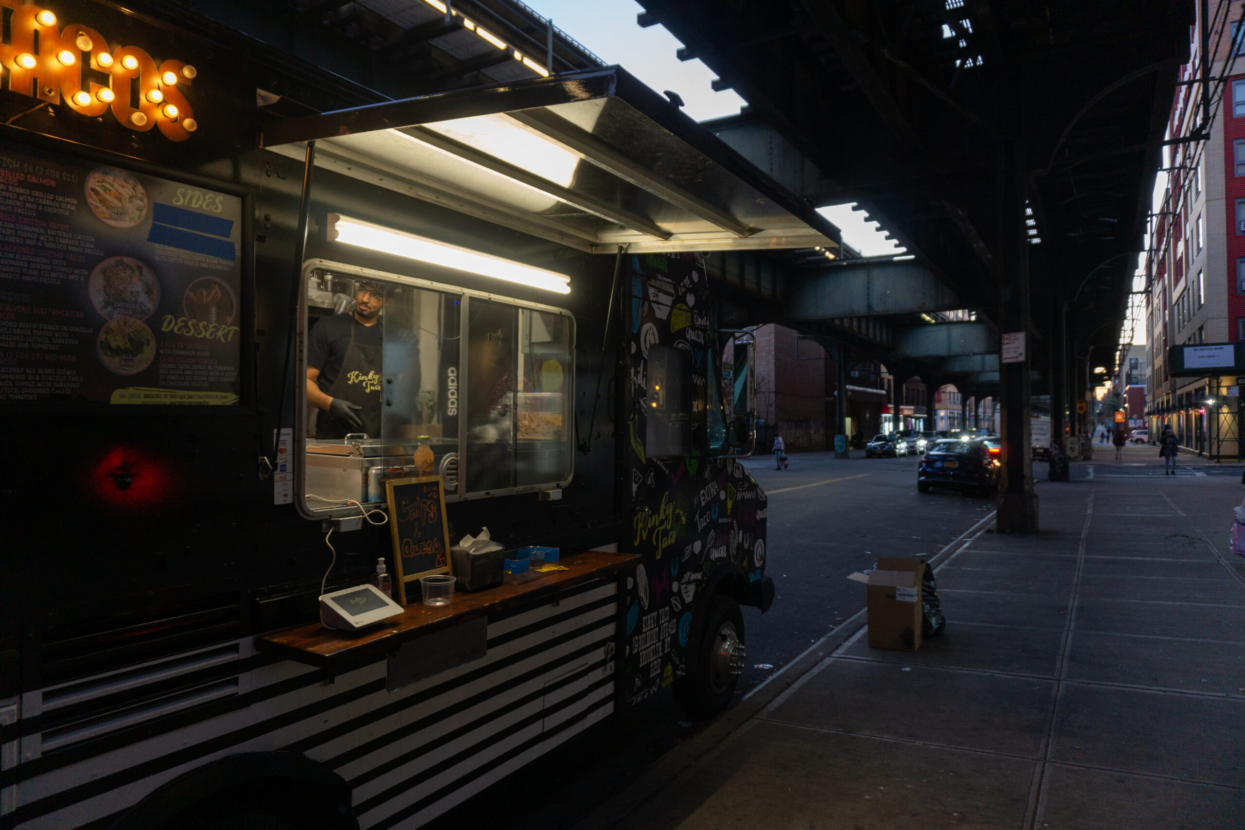 - Nov. 17, 2022–New York, NY: Scenes from Livonia Avenue, Brooklyn. Akeelah and her partner Mikell are taking customer orders. They usually open the food truck at 5 or 6 p.m. during the slow season. Photo by Leying Tang.