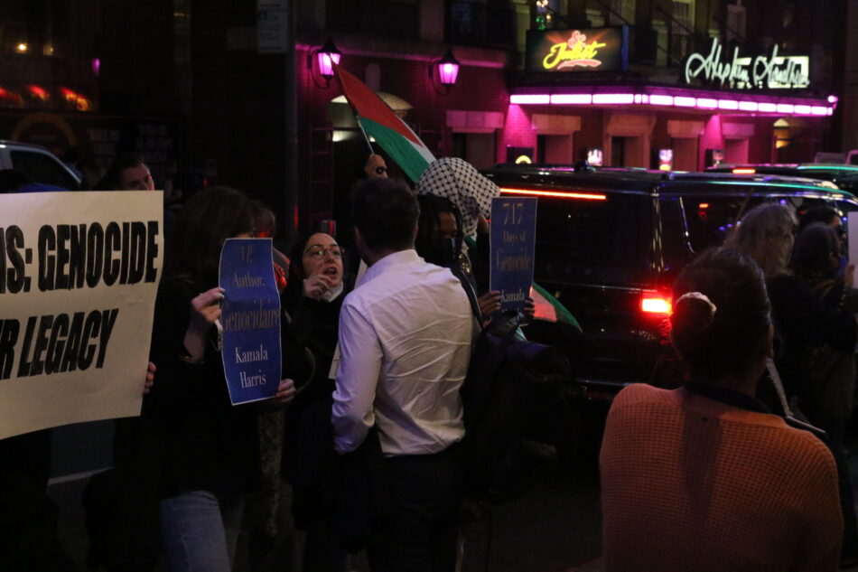 While many attendees felt a sense of pride and inspiration during the event, that sentiment wasn’t shared throughout the venue, with the event being interrupted throughout the course of the evening by at least three pro-Palestinian protestors yelling about the “bombings” and “genocide” happening in Gaza, telling Harris “the blood of Palestinians is on [her] hands” before being escorted out by security.