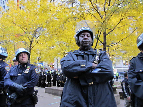 NYPD occupied Zuccotti Park this morning, refusing to allow protestors to re-enter after they were evicted by police last night. Photo by Chris Palmer