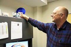 Lt. William Petersen of the Detroit Police Department admires photos of his family and said her personal life helps keep him calm after a stressful day at work. Photo by Emily Canal