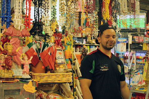 Jordan Velazquez, 20, stands behind the front counter at La Carreta Market in Detroit's Mexicantown. Velazquez said more aggressive border patrol enforcement has led to a decrease in business at the store. Photo by Kathryn Kattalia