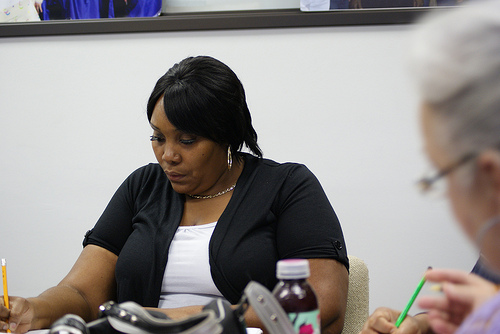 Eva Reed, 42, attended class at Mercy Education Project on Oct. 13. Reed began the Pace Program in 2009 and will receive her GED in November. When Reed started the program she was reading at 4th grade level. The illiteracy rate in Detroit is 47%. Photo by Jessica Bell