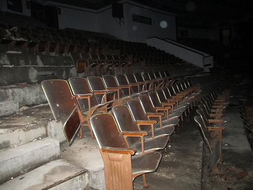 For now the school auditorium of 2011 remains intact, except for some minor water damage that has collected by the stage. Still, John fears destruction in the not too distant future.