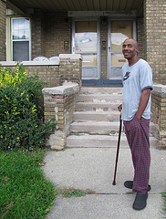 Back in Detroit, on the city’s West Side, in a neighborhood where rotting, boarded up homes outnumber healthy ones at least two to one, Juan Scott, 54, hobbled out of a house and onto his front porch, a cane supporting his weight. He said that he’s been out of work “because of an accident”, was once a chef, and, that he’s always been a Lions and Tigers fan.